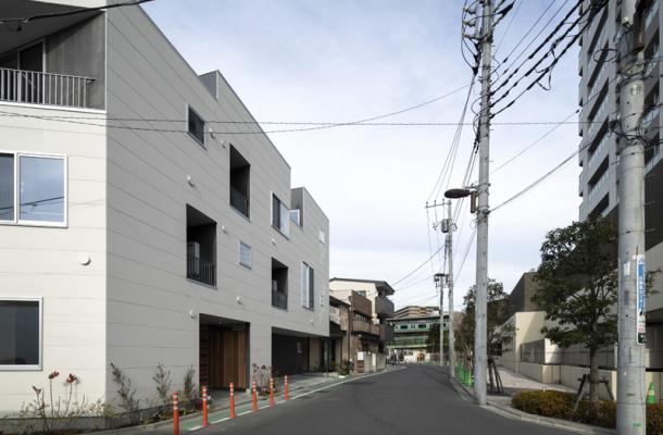 世田谷区の緑道に面する6世帯のコーポラティブハウス。緑道は、生活通路であり、公園のようで...