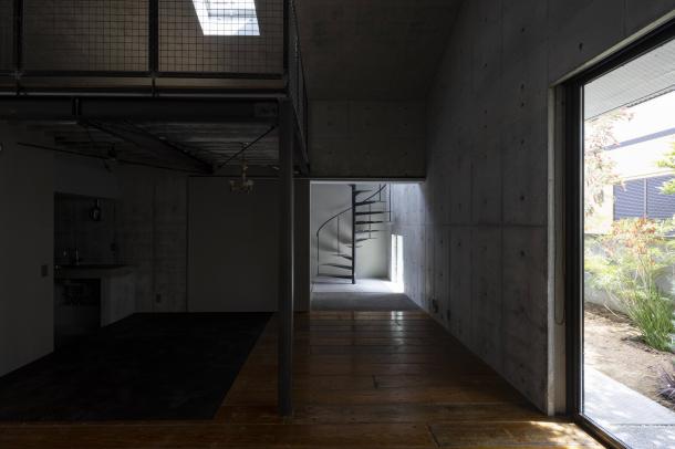 敷地は2m幅の通路で接続された前面道路から7mほど奥まった場所にあり、周囲は敷地いっぱ...
