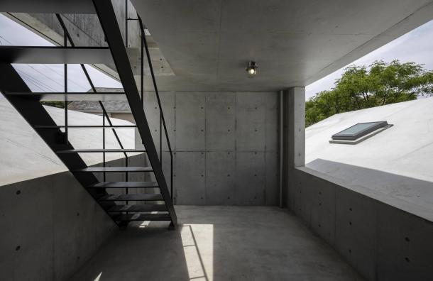 敷地は4mほど高低差のある上下2つの道路に接続した傾斜地である。 斜面のもつ高さ方向の変化...