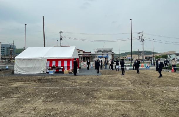 相模湾と富士山を望む敷地にて、現場がスタートしています。 地中に鋼管を打ち込んで地盤を...