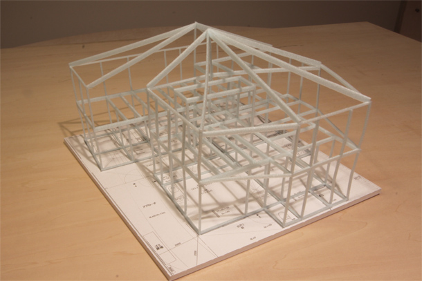 着工前には、軸組の模型を1/50のサイズで制作しています。