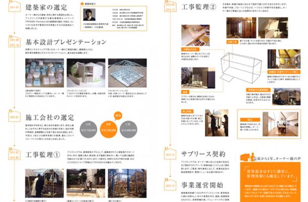 設計の提案から施工会社の選定、工事監理から事業運営開始までが、写真付きで非常に分かりやすく説明されています。