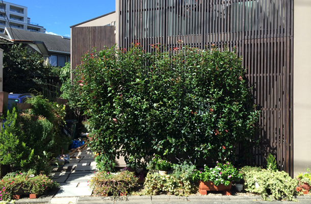 祐天寺の長屋のメンテナンスに伺いました。竣工してから約2年になりますが、アプローチが緑豊かで、気持ちのよい住環境になっていました。