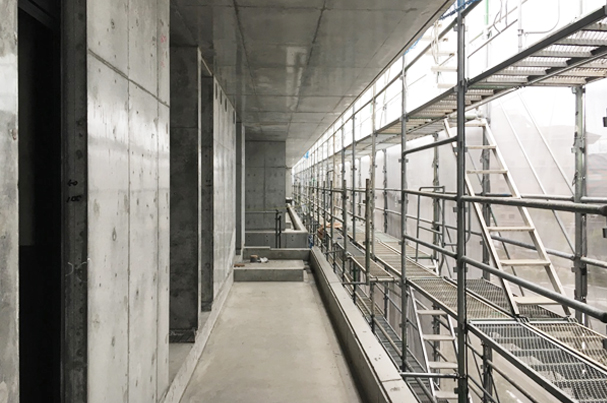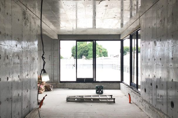 サポートと型枠が外れた事で共用部のスケール感や周辺環境との距離感が分かり易くなり、室内からはサッシ越しに歩道付近の緑や遠くの緑が見えたり、南北に通り抜ける涼しい風が感じられたりと、気持ちの良い場所が幾つもでき始めていました。 この記事にコメントする