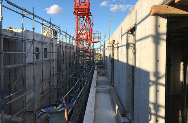 LUZ白金の上棟時の状態を、写真家の川辺明伸氏に撮影してもらいました。 このタイミングの構...