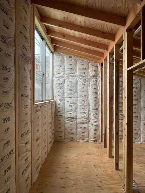 三軒茶屋の現場にて内装工事が進んでおります。 外部に面する部分にはウレタン吹付で断熱を...