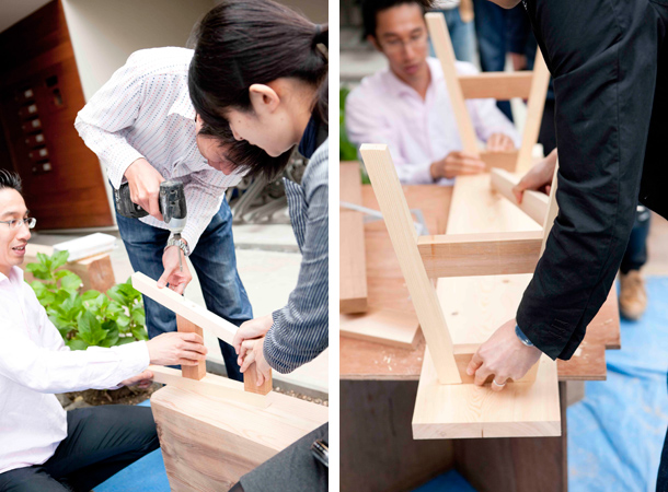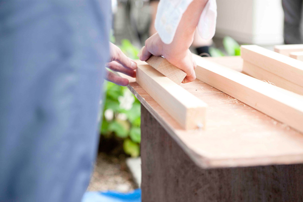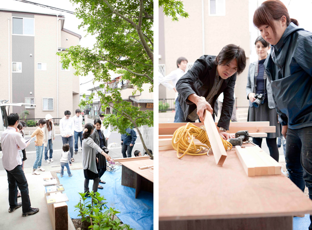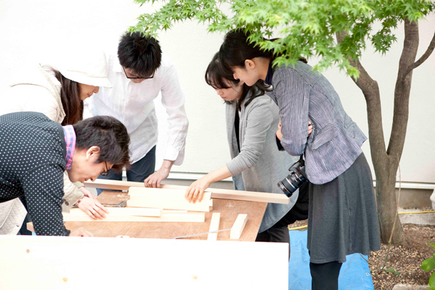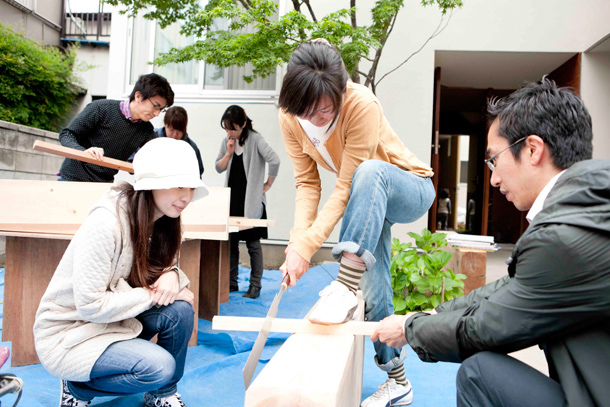 オーナー、入居者、プロデューサー、建築家、施工者、カメラマン、など建物に関わった方が集まりベンチ作りを兼ねて交流会を行いました。