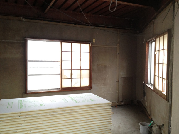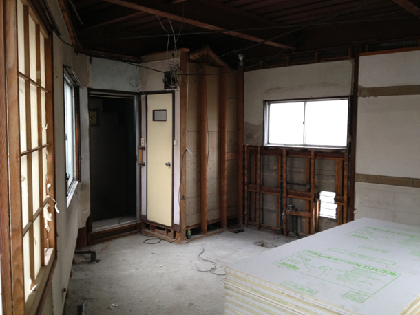 TOYOI6や、江古田の住宅のプロデューサーとしてお仕事させて頂いている、プロパティデザインオフィス(PDO)さんの事務所のリノベーション。1F、2Fをスケルトンにしてテナント募集し、3FをPDO事務所にするプログラムです。解体工事が終わり、これから内装仕上げに入っていきます。