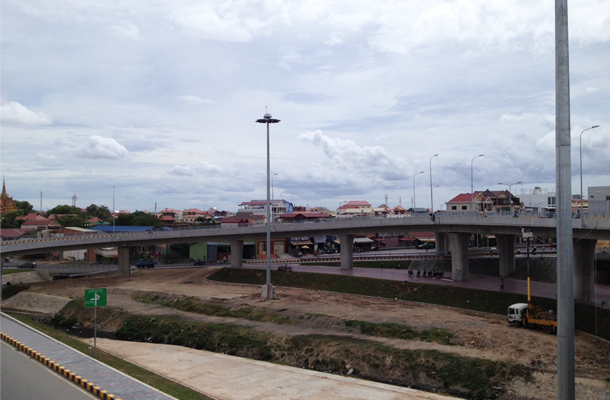 これは事務所のあるTAMASAから、市内へと続く道の途中にあります。プノンペンにはこのような陸橋がほとんどなく、通勤時間帯には交通渋滞が頻発していました。