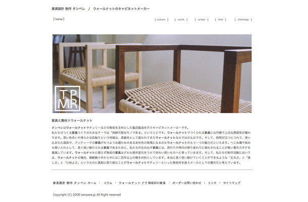 南青山ギャラリーのミーティングスペースで使用するテーブルを、家具設計制作の「タンペレ」さんに依頼しました。タンペレさんはウォールナットやチェリーなどの無垢を主材とした製品を制作しています。家具造りの大きなテーマは「持続可能なモノである」ということ。