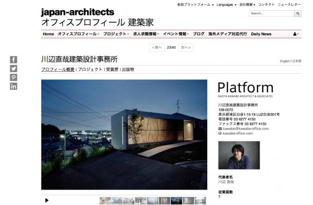 川辺直哉建築設計事務所が、japan-architectsに登録されました。 ウエブサイト「Platform」と...