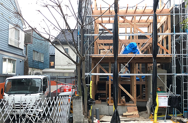 杉並区上井草で工事を進めている住宅の建て方を行ないました。