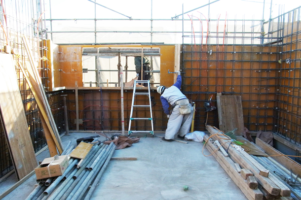 1階のコンクリート打設が終わり、2階に上がれるようになりました。