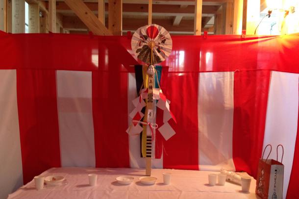 上棟式では、工務店や棟梁、設備関係の方にも同席頂き、お施主様との顔合わせの機会にもなりました。