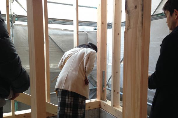 またお施主様と現場の確認をおこない、広さの感覚やサッシ位置など実際に現場で見ながら確認して頂きました。