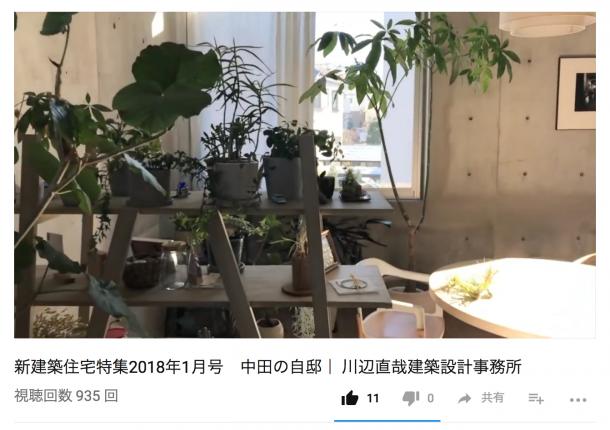 新建築住宅特集2018年1月号(12/19発売)で掲載されている「中田の自邸」の動画をとりました。新建築Onlineにて紹介されていますので、是非ご覧になってみてください。携帯のカメラを片手に、家の中を歩きまわっています。