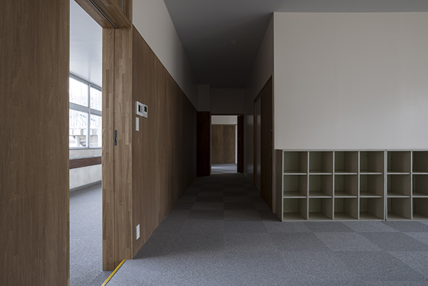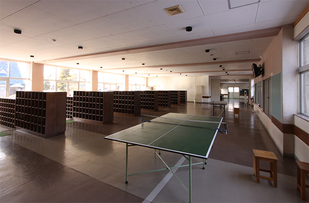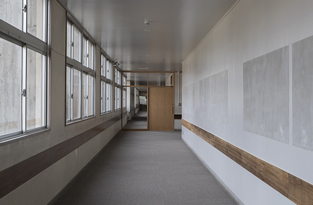 対象となった建物は南側教室北側廊下形式の北・南校舎を昇降口、渡り廊下で繋げた典型的な学校建築であり、断熱性能はなく、サッシは単板ガラスであった。まず我々は断熱性能を付加するエリアを絞り、機能を向上させた。その上で、40年間受け継がれた記憶を探求し編集した。結果として、当時使用していた本棚や下駄箱の保存状態が良く、それらを補修し新たに空間の間仕切りや本棚として再利用した。
