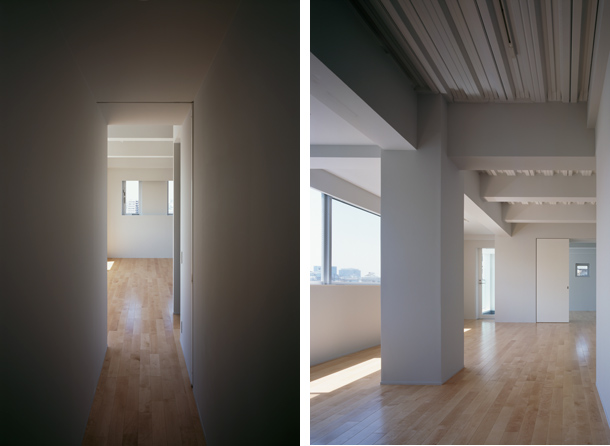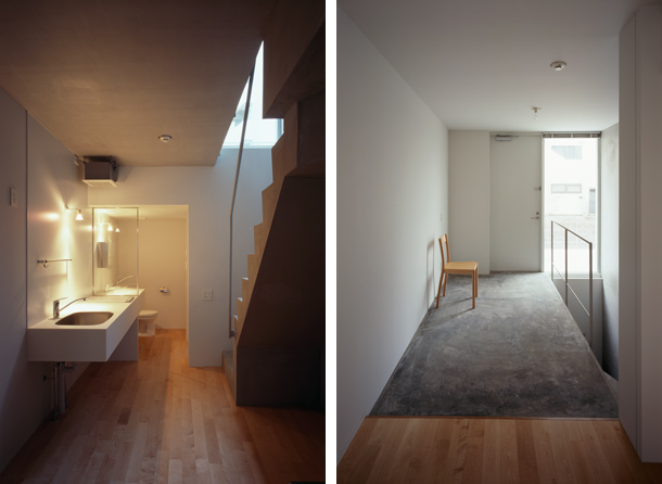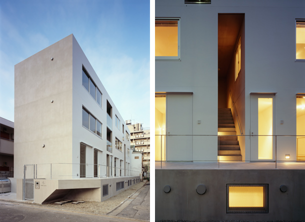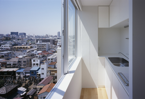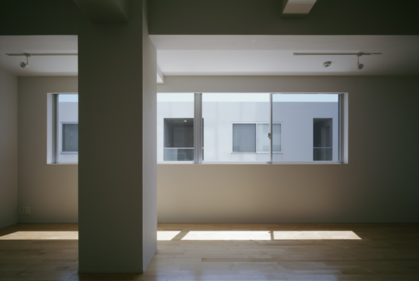 街のスケールと建築が繋がっていくように、3棟のボリューム感、形状、プロポーションを第一に考え、初期段階での検討には特に注視した。またその形態が主用途である住居の構成から部屋の居場所までを定義するような、街から生活レベルでの視点がひとつながりになるようなプランニングを意識した。都市と生活の接点となる開口部は、地面際の小さな開口から見上げるような高さのガラス壁面まで、高さに応じたデザインとした。