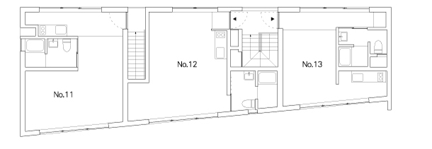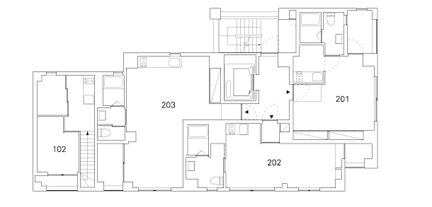 また、コストや施工性を考慮し、異なる構造形式を採用しながらも、使用する材料の微差を全体の表現に馴染ませていくことや、各部のディテールまでを街と生活との接点として一貫したデザインコントロールを行うことが、賃貸住宅として付加価値を得ながらも街に対する提案に繋がると考えた。