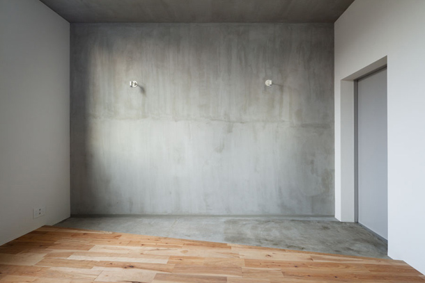 壁天井のモルタル仕上げが住戸内のアクセントとなり住戸内の繋がりを生む