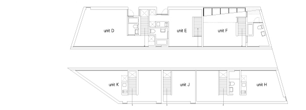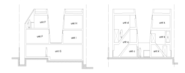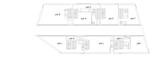 メゾネット住戸と鋭角突端の住戸