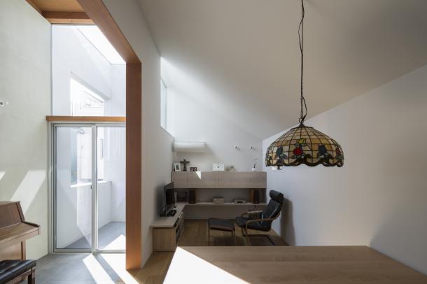 寝室やリビング・ダイニングといった居住スペースと外部環境とのバッファゾーンとしても機能していて、南北に風が抜け、東側に向き合う住宅の視線を制御しながら、明るく居心地のよい場所になっている。