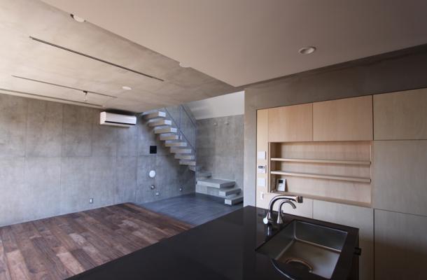 新宿区に建つ6世帯のコーポラティブハウス。接続している道路からアプローチの階段を下りると...