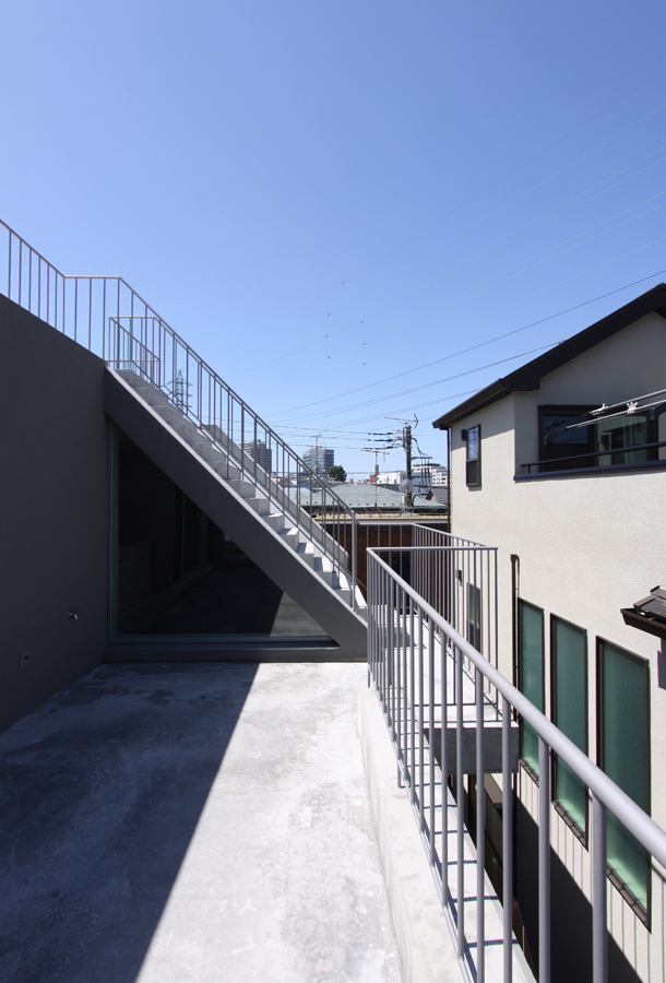 敷地は2m幅の通路で接続された前面道路から7mほど奥まった場所にあり、周囲は敷地いっぱ...