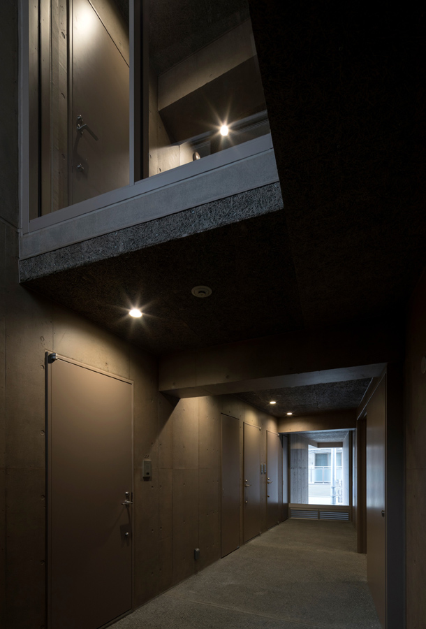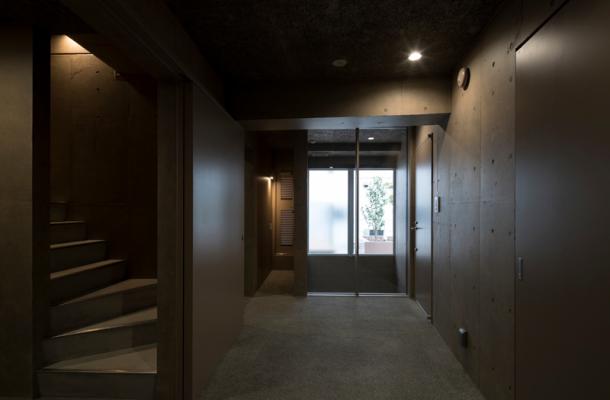 新宿区に建つ6世帯のコーポラティブハウス。接続している道路からアプローチの階段を下りると...