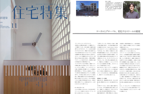 新建築住宅特集2013.11月号の巻頭に「ローカルとグローバル、変化するスケール精度」というタイトルでコラムを寄稿させて頂きました。「私のスケール感」というテーマで、各号建築家がコラムを掲載していくものです。